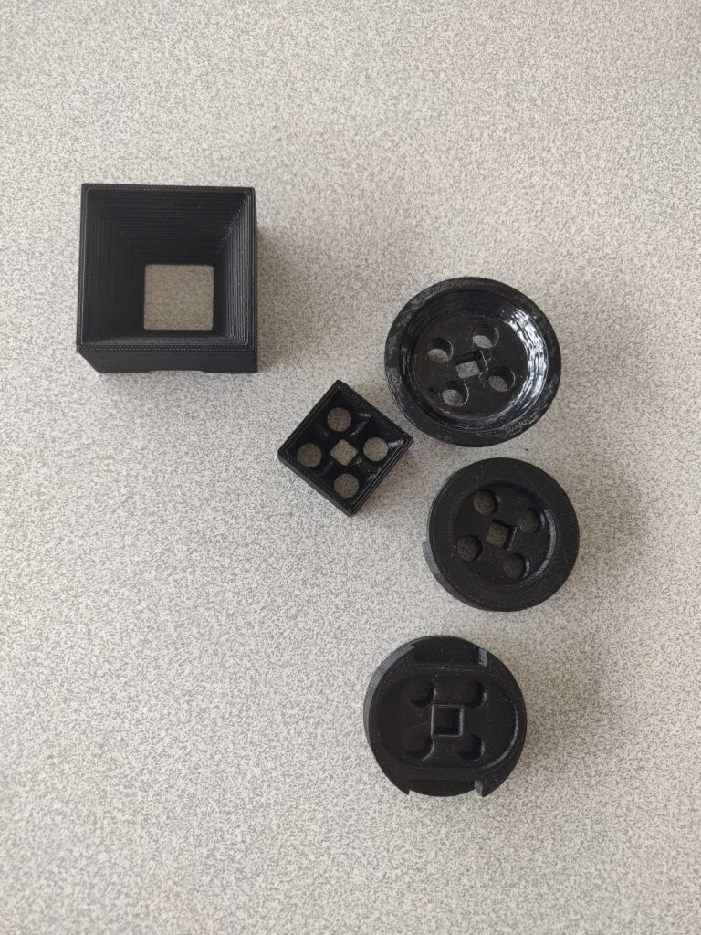 Le deuxième cours concernait la calibration de ce capteur, plusieurs obturateurs ont été modélisés en 3D et imprimés en FFF afin de choisir la géométrie la plus adaptée à la détection des couleurs et leur réflexion.
